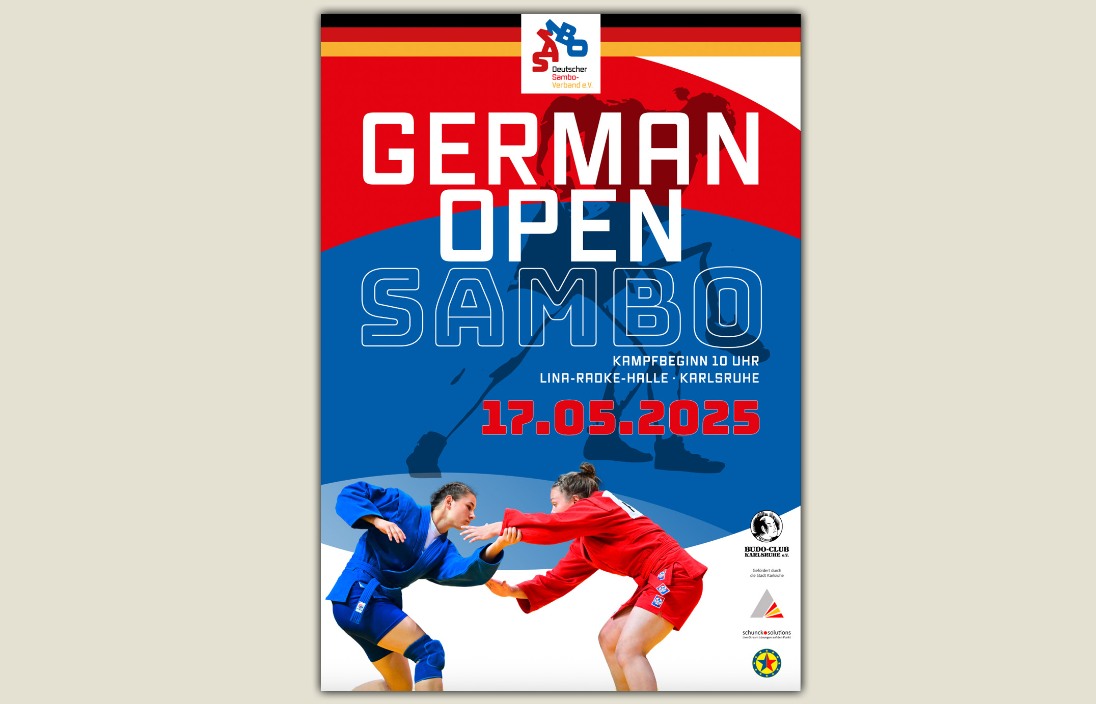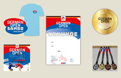 | Beschreibung | Entwicklung des Corporate Designs für die Sambo German Open | Anwendungen 2025 u.a. Plakat, Medaillen, Urkunde etc. |